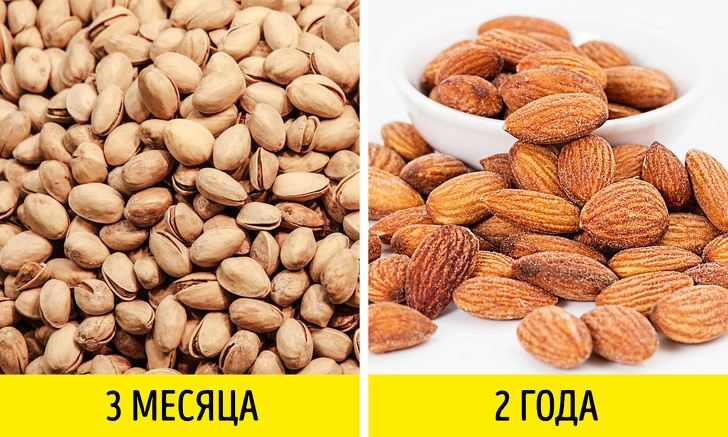 Горіхи повні корисних речовин і відрізняються високою калорійністю, за рахунок чого швидко насичують. Їх зручно брати з собою і тримати вдома для перекусу — особливо тим, хто сидить на дієті. Велика частина горіхів прекрасно зберігається протягом 2 років, за винятком фісташок — їх варто вжити протягом 3 місяців.
