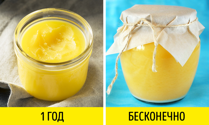 Цей дуже зручний спосіб зберігання масла щосили використовувався задовго до того, як холодильники взагалі були винайдені. Олія з відкритою банки можна використовувати протягом року, а якщо воно зберігається в герметичній посудині, на який не потрапляють прямі сонячні промені, — скільки завгодно. Це правило працює і для покупного масла — якщо ви не відкривали банку, можете використовувати продукт в будь-який час.