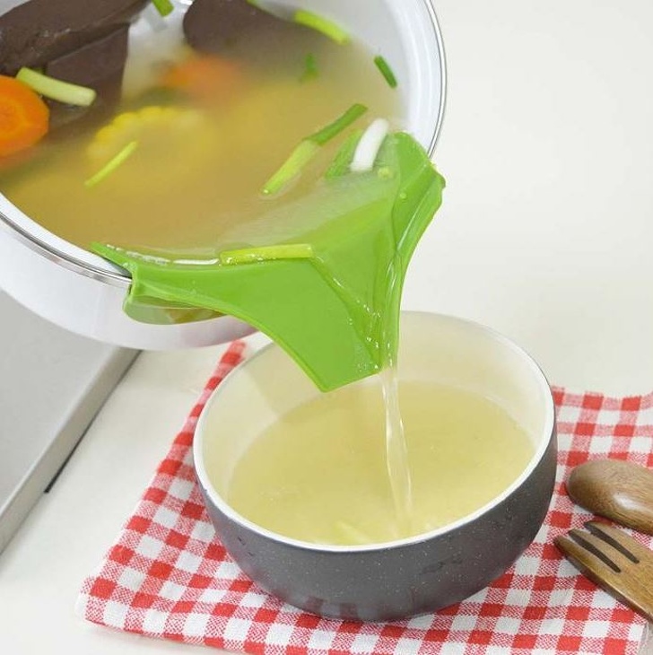 Не вдається перелити суп, не капнувши при цьому на стіл? Тоді зверніть увагу на силіконовий носик. Він стане в нагоді для переливання будь-яких рідких страв точно в ціль.