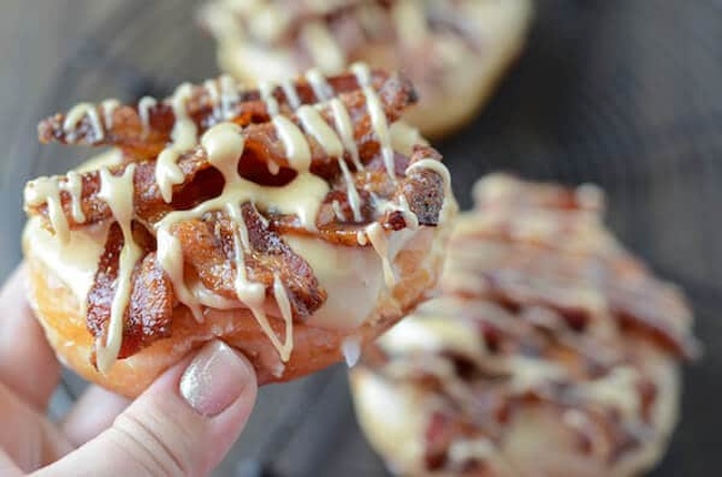 Ці пончики — просто мрія Гомера Сімпсона. Вони политі карамеллю або кленовим сиропом, а зверху посипане смаженим беконом. Незвичайне поєднання, однак в американських пончиковых це блюдо досить популярно.