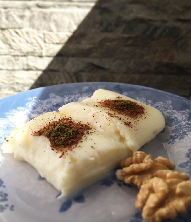 Це блюдо називається «Tavuk Göğsü», і в його основі дійсно курка. Грудка подрібнюється і змішується з рисом, молоком, цукром, борошном і маслом, а зверху присипається мигдалем і корицею — виходить солодкий пудинг.