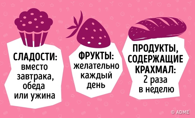 - 2 рази в тиждень можна дозволити собі все що завгодно, але тільки замість сніданку, обіду або вечері.