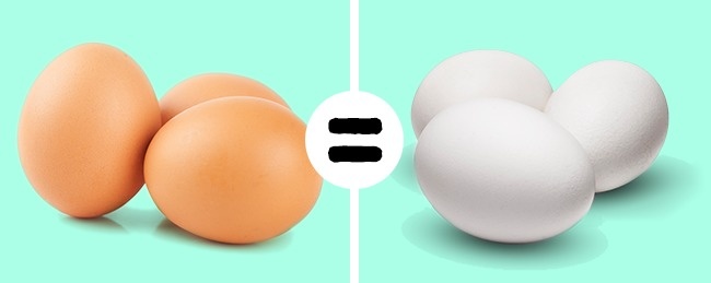 Довгий час на піку популярності був міф про найбільшої корисності яйця з коричневою шкаралупою. Проте розмір і колір яйця залежить від породи курки. А по кольору жовтка можна зробити висновки про те, що вона отримувала на обід. Головне правило вибору яєць — умови зберігання і зовнішній вигляд. Найбезпечніший варіант — чисті яйця, без тріщин, що зберігаються в холодильнику.