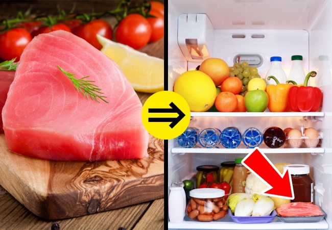Вихід: розморожуємо тунця без зіткнення з повітрям. З морозилки перекладаємо тушку на нижню полицю холодильника, не порушуючи цілісності упаковки. На рибу вагою в 2 кг знадобиться приблизно 24 години.