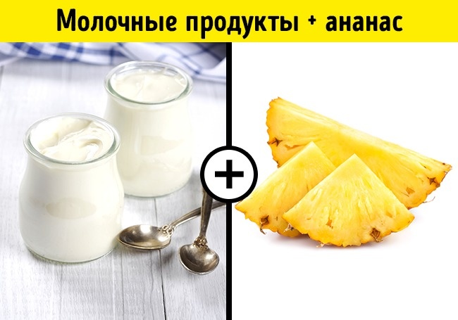 Кислі фрукти уповільнюють травлення і тяжко «йдуть», особливо вранці. Крім того, до складу ананаса входить ферментний комплекс — бромелаін, який у поєднанні з молочними продуктами може викликати інтоксикацію організму.