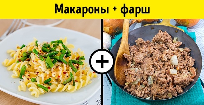 За схожою причини варто відмовитися і від макаронів з фаршем. Слинні залози виділяють ферменти птіалін і амілазу, які руйнують крохмалисті вуглеводи (вермішель) у прості цукру. Покриття білкових продуктів (м'яса) цукрами створює небезпечні сполуки, які можуть призвести до виникнення діабету і серцево-судинних захворювань.
