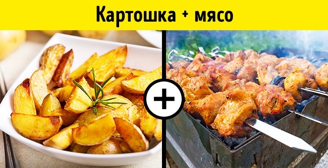 Хто ж встоїть перед маминою смаженою картоплею з м'ясом або котлетою? А адже це дуже важка для організму поєднання. Крохмаль (картопля) вимагає лужної травної середовища для перетравлення, білок — кислотної. Разом вони надовго застряють в шлунку і можуть подарувати цілий букет різноманітних відчуттів: печію, відрижку, гази або інші розлади. Рятуйся хто може.
