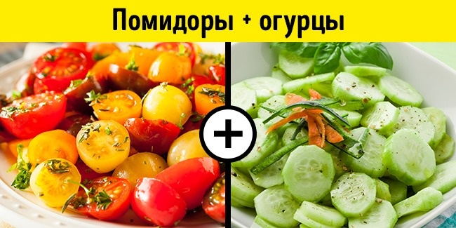Салат з огірків і помідорів особливо популярний в літній час і зустрічається практично на кожному столі. Але останні дослідження показали, що змішування цих овочів порушує біохімічні реакції організму. Утворюються зайві солі, з часом з'являється набряклість, а корисні вітаміни не засвоюються в повному обсязі.