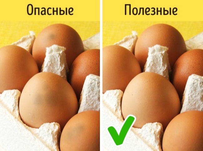 Щоб не помилитися з вибором яєць, піднесіть одне з них до джерела світла і придивіться. Якщо всередині помітні темні плями, то яйце зіпсовано і для прийому в їжу не годиться.