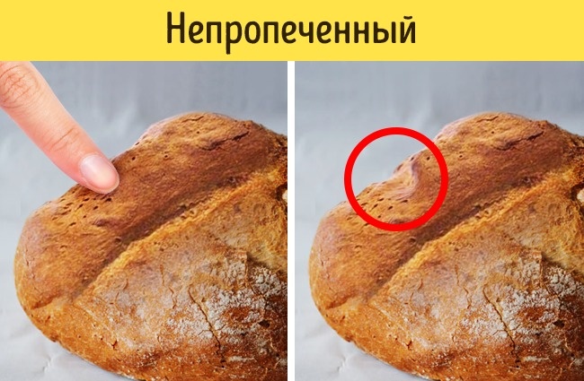 - Добре пропечений хліб з якісного борошна легко відновлює форму. Спробуйте натиснути на нього і перевірте, чи залишилася вм'ятина. Якщо так — хліб недопекли.