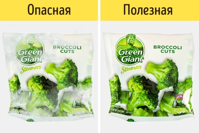 - Зрозуміти, розмерзалися продукти під час перевезення, можна вже на упаковці. Помітили на ній сліди зледенінь або здуття — відкладайте.