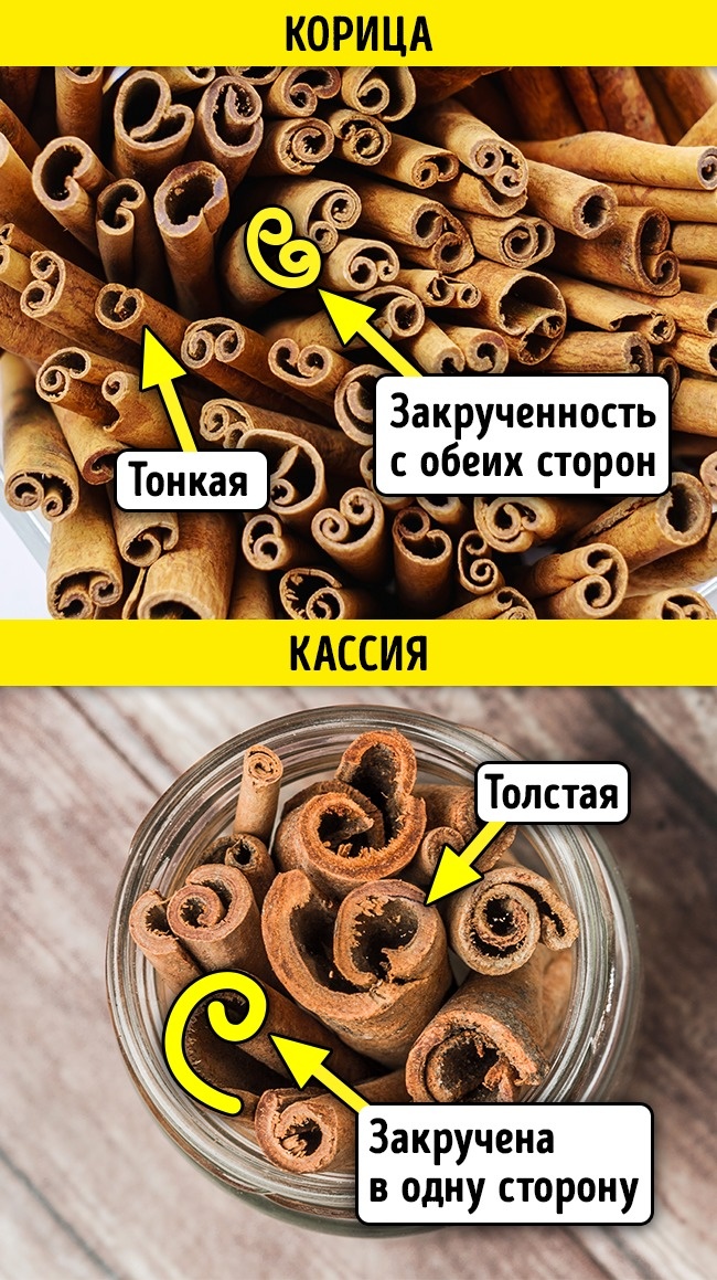 - Мелену корицю легко відрізнити від касії, капнувши в порошок трохи йоду. Якщо спеція стала синьою — це касія.
