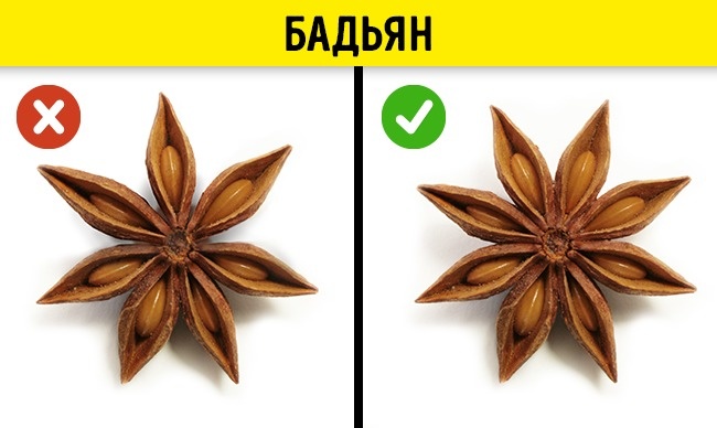 - При виборі спецій і прянощів завжди краще віддавати перевагу цілим, а не меленим. Часто мелену спецію розбавляють дешевими аналогами і добавками, і самостійно перевірити якість такого продукту складно.