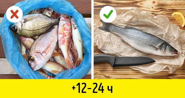 Не варто довго зберігати свіжу рибу в поліетиленовому пакеті, вона від цього швидше задихнеться і протухне. Краще всього підійде для зберігання вощений папір, але тільки не газета.