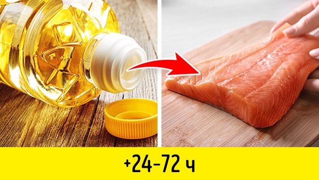 Ще один продукт, здатний зберегти рибу довше, — рослинне масло. Воно затримує розвиток мікроорганізмів. Візьміть рослинне масло без запаху і змастіть рибу з усіх боків.