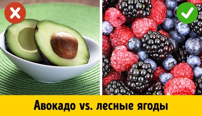 А ось авокадо далеко не дієтичний продукт. Іспанці називають цей плід «маслом в шкірці»: енергетична цінність авокадо становить 227 ккал. Тому він в невеликих кількостях підходить скоріше як намазування або заправки.