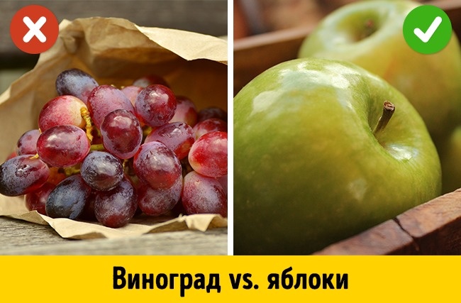 Виноград ж вважається одним з найбільш шкідливих фруктів не тільки для фігури, але і для здоров'я в цілому. У винограді багато цукру, його шкірка довго перетравлюється, кісточки можуть забивати кишечник, а кислоти, які містяться у винограді, пошкоджують зубну емаль.