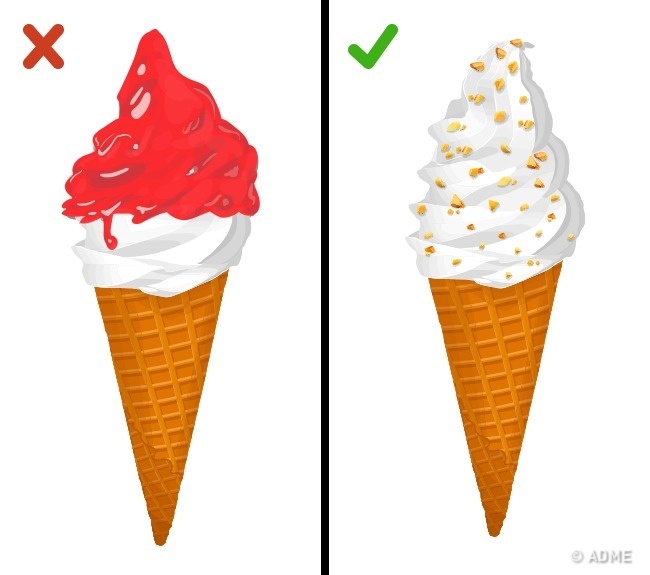 Вибираючи морозиво, обов'язково читайте склад. Часто десерт, що містить ягідні смаки, не може похвалитися натуральністю інгредієнтів. Добре, якщо продукт містить тільки горіхи, цукати або мармелад в якості добавок. А ось заморожений лід — це один суцільний консервант.