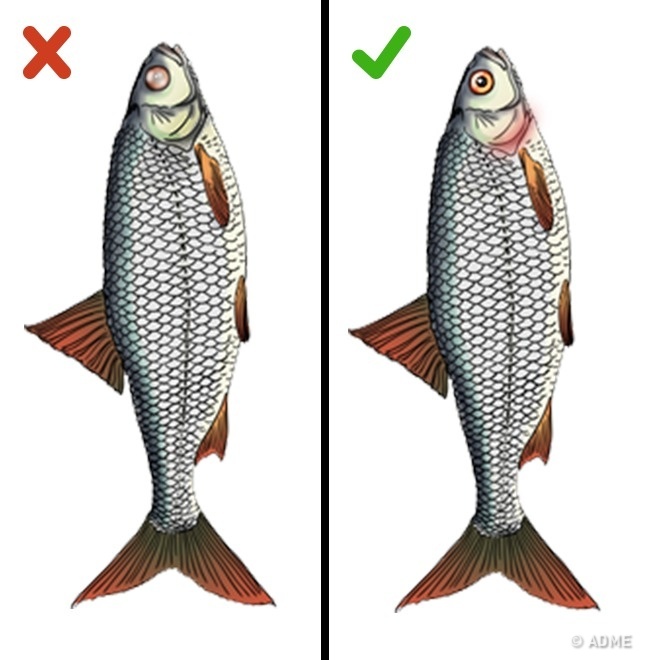 У свіжої риби очі повинні бути яскравими — каламутні і опуклі вказують на те, що риба стара. Зябра повинні бути яскраво-червоними, в окремих випадках допускається світло-рожевий колір (коли через зябра спускали кров). А тулуб має бути пластичним: якщо рибу взяти в руки, то хвіст повинен вільно звисати.
