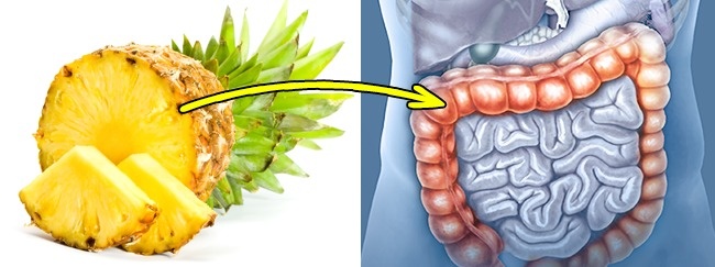 Травний фермент бромелаін, який є в ананасі, здатний очистити пряму кишку і поліпшити травлення. А ще в ананасі міститься велика кількість клітковини: всього з однією часточкою організм отримує до 10 % денної норми цієї поживної речовини.