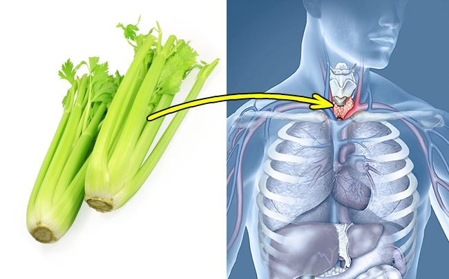 Селера стимулює роботу щитовидної залози. Ще він очищає кров і перешкоджає відкладенню сечової кислоти в суглобах. А зелений смузі, до складу якого входить селера, навіть допомагає при запаленні щитовидки.