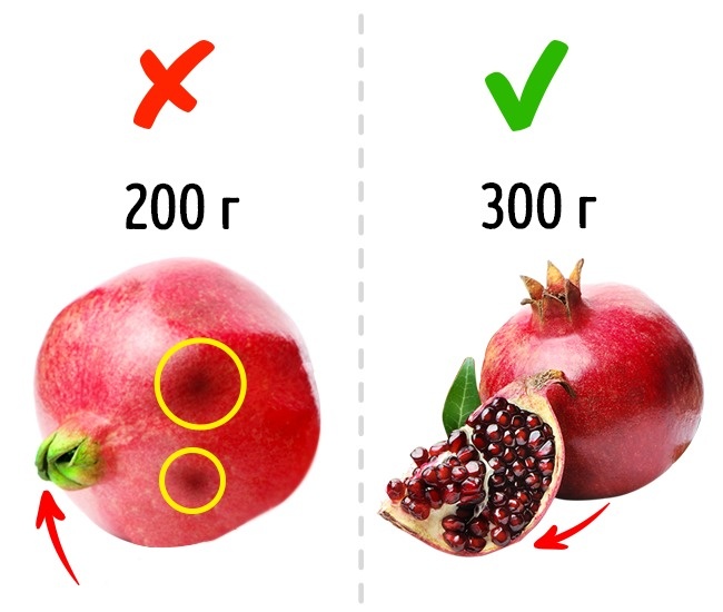 - Стиглий гранат завжди важче не зрілого, тому з двох однакових за розміром плодів варто вибирати більш важкий.