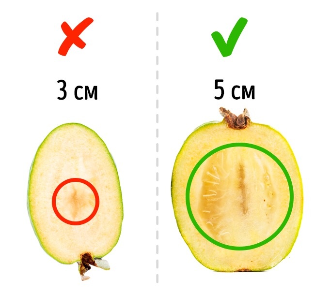 - Внутрішня частина плоду повинна бути прозорою, біла ж м'якоть означає, що плід недозрілий.