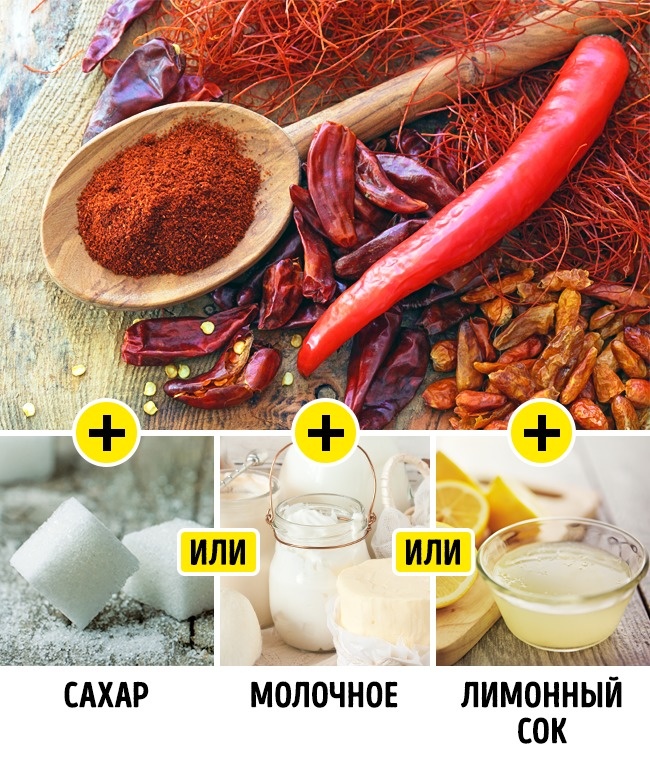 - скористатися цукром, щоб нейтралізувати гостроту;