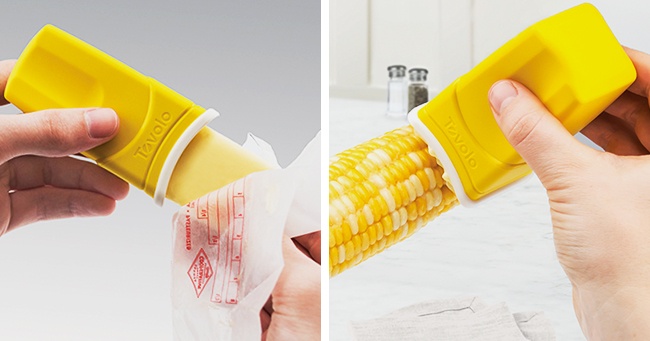 З цією дрібницею не потрібно бруднити руки або ніж, щоб намазати маслом щось гаряче, наприклад, кукурудзу. Потрібно всього лише завантажити його в резервуар, а при нанесенні злегка натиснути.