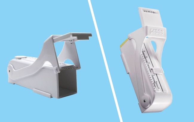 Це пристосування використовується і як контейнер, і як дозатор. У нього є повзунок, який виштовхує масло, і шкала із зазначенням кількості. Відрізається масло простим натисненням.