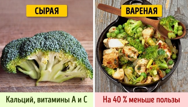 У броколі багато вітамінів А, С і кальцію. Але, якщо зварити цей овоч до повної готовності, в ньому виявиться на 40 % менше корисних речовин, ніж у сирому вигляді.