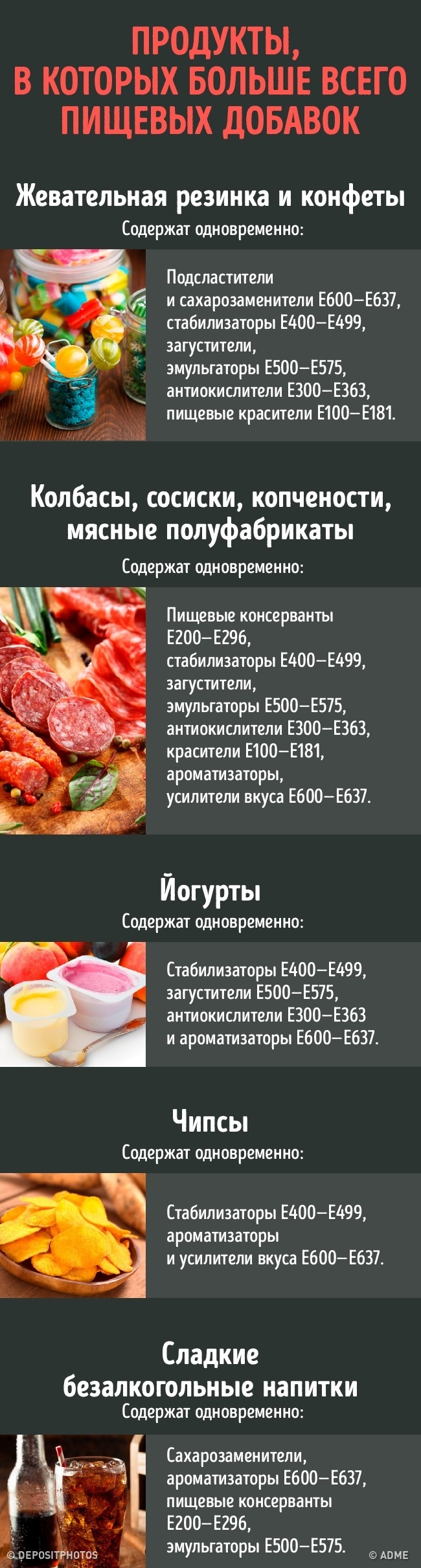 До складу практично всіх продуктів входять харчові добавки. Деякі з них заборонені в різних країнах, про шкоду інших вчені поки тільки сперечаються. Але є і корисні.