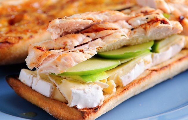 Якщо ви хочете спробувати щось нове і порадувати свої смакові рецептори, пропонуємо оцінити це оригінальне поєднання. На підсмажений шматочок пшеничного хліба покладіть шматочки сиру брі, скибочки зеленого яблука і індички.