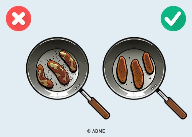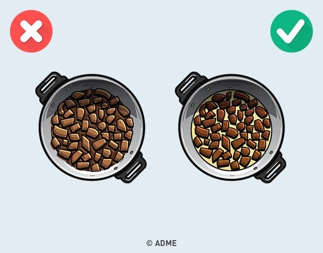 - Поширена помилка класти занадто багато в одну сковорідку. Якщо замість сухого м'яса ви хочете отримати соковите, спробуйте залишати трохи простору між шматочками.