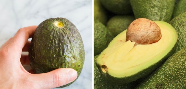 При трясінні стиглого авокадо чути стукіт кісточки. Якщо натиснути на місце кріплення держака, то стигле авокадо буде м'яко пружинити, а перезріле просто вдавится всередину.