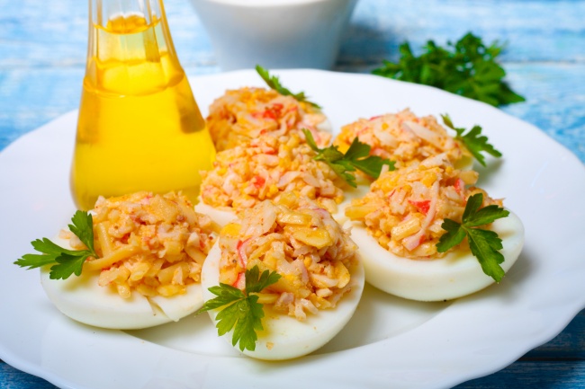 Яйця, фаршировані сиром і крабовими паличками сприяють розвитку ліні