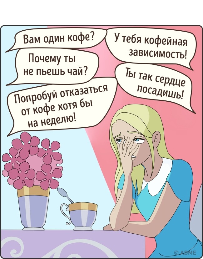Напої з ароматної кави популярні в усьому світі. Десь каву п'ють міцним, нерозбавленим, десь додають смаколики і спеції, а деякі і зовсім вважають за краще його холодним, присмаченим морозивом. Спеціально для кавоманів Social.org.ua створив комікси, в яких себе впізнає кожен любитель кави.