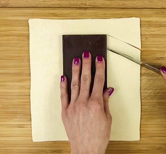 - 1 лист готового листкового тіста (більше розміру шоколадки)