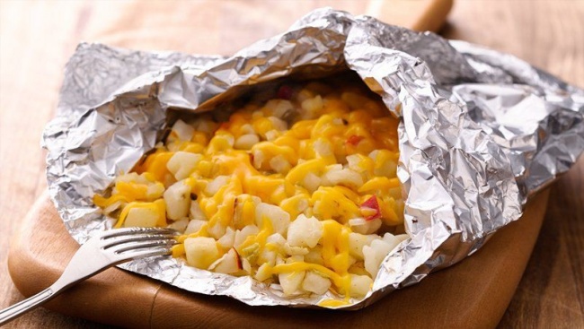 - Закрийте гриль кришкою і готуйте на середньому вогні близько 30 хвилин, через 15 хвилин не забудьте перевернути. Обережно відігніть краю фольги, посипте сиром картопля, знову закрийте і залиште на 4-5 хвилин, поки сир не розтане.