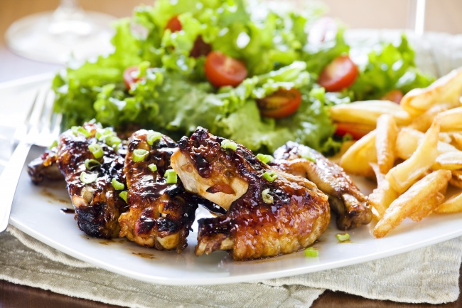 - У крилець відрізаємо останню фалангу і викидаємо. Соус змішуємо з цукром і перцем, доводимо до кипіння, кип'ятимо 5 хвилин.