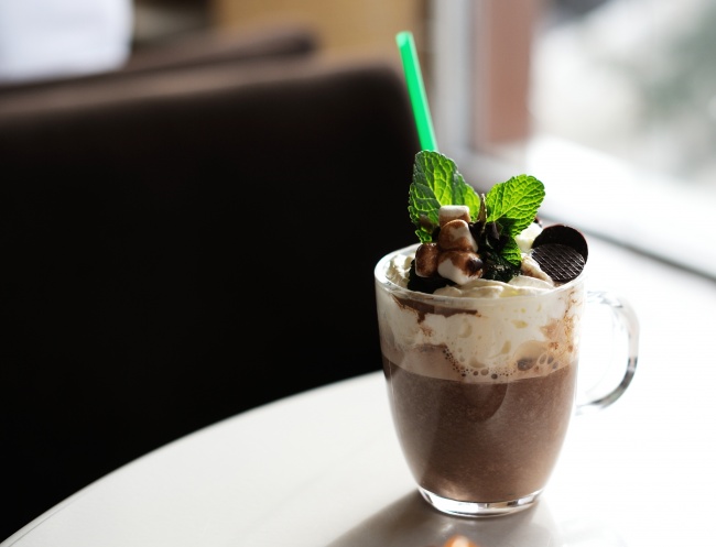Зварити каву, ще в гарячому кави розчинити шоколад. Трохи охолодити, додати половину морозива, м'ятний сироп або лікер, кілька кубиків льоду і збити в блендері. При подачі присипати крижаною крихтою, додати вершки, морозиво, при бажанні прикрасити м'ятою і тертим шоколадом.