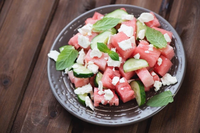 Салат з кавуном, огірками та сиром фета