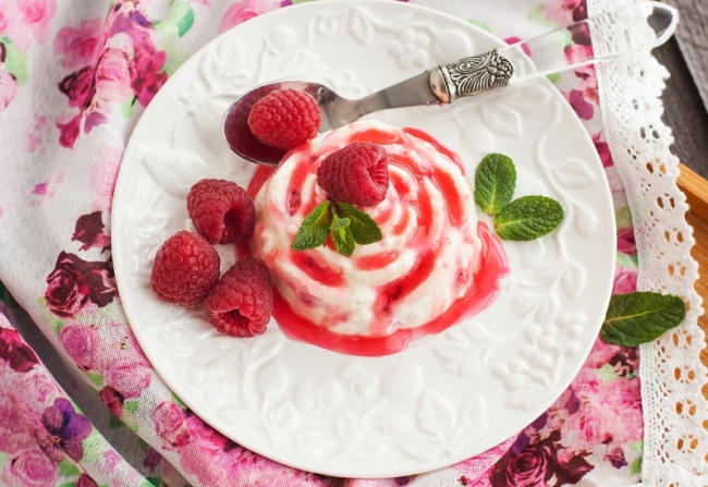 - Поливаємо застигле бланманже ягідним соусом, прикрашаємо свіжими ягодами і подаємо.