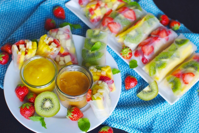 - Викладайте начинку і завертайте фруктові роли з рисового паперу, як вам більше подобається.