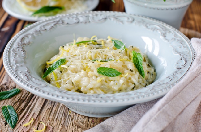 - Змішуємо жовток, вершки, половину сиру, цедру і сік лимона. Додаємо отриману суміш в різотто. Перемішуємо і знімаємо з вогню.
