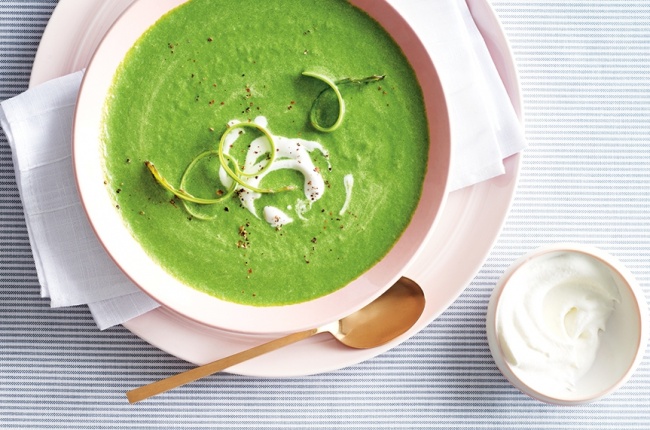 - Кабачки подрібнити з бульйоном в пюре, додати вершки і прогріти на маленькому вогні, не доводячи до кипіння.