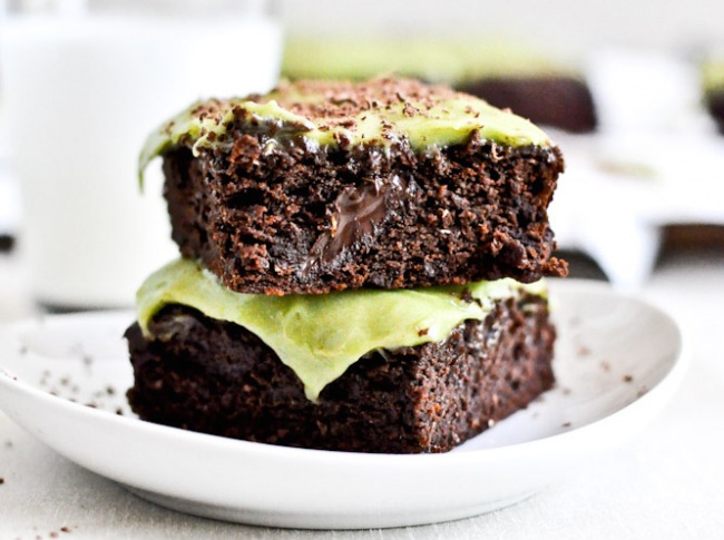 - Приготуйте тісто для брауні: пюрируйте два великих авокадо з допомогою блендера, а потім збийте їх з розтопленим шоколадом (250 г), медом, яйцями і маслом.