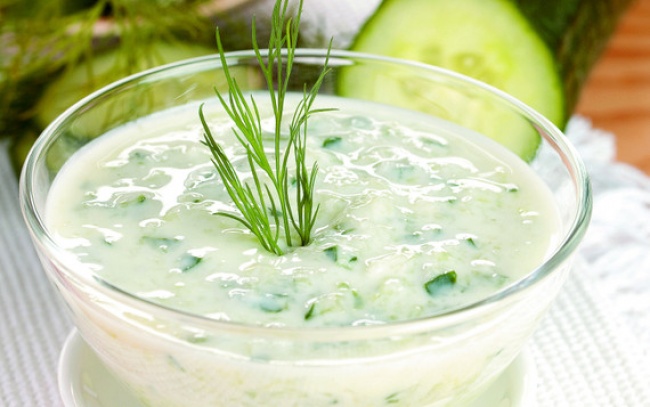 Натріть на тертці огірок і злегка відіжміть сік. Додайте сметану, сир, кріп і часник. Все добре перемішайте до однорідного стану.