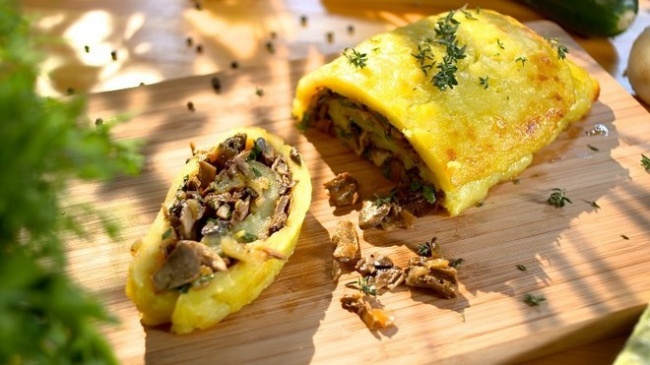 - Тим часом дрібно нарізані гриби з цибулею обсмажити на рослинному маслі.