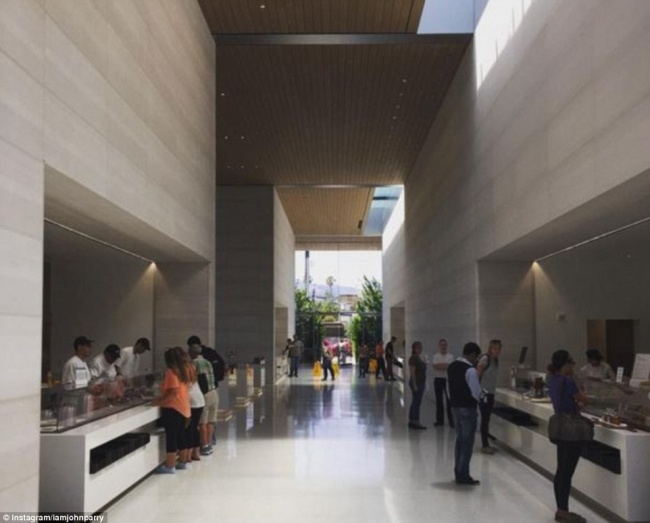 Штаб-квартира Apple розташована в Купертіно (Каліфорнія, США). Їх їдальня, яка називається Caffè Macs, дуже простора, світла і безкоштовно. На обід у Caffè Macs пропонуються страви мексиканської, італійської, японської, іспанської, французької кухні, а також фастфуд. На сніданок зазвичай подають французькі тости з полуницею, млинці з шоколадною крихтою, десерти, свіжовичавлені соки і кілька видів морозива. Меню постійно оновлюється.